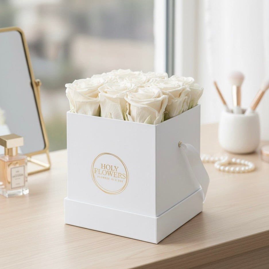 The Infinity roses from Holy Flowers are carefully selected and can last for 1 to 3 years thanks to special preservation. The rose box is handmade and gives a luxurious look to any home. Be it for a birthday, Valentine's Day, Mother's Day or anniversary - preserved roses bring joy and are the ideal gift.