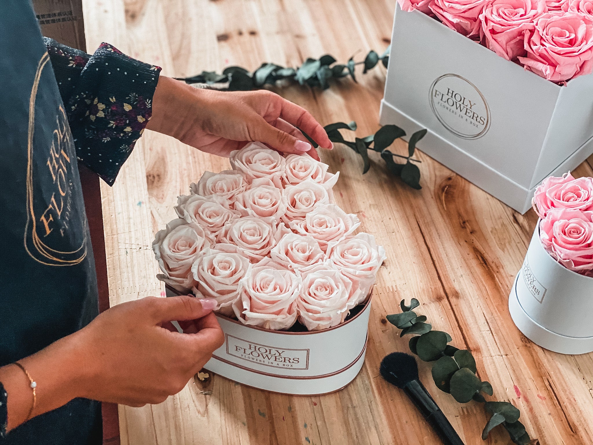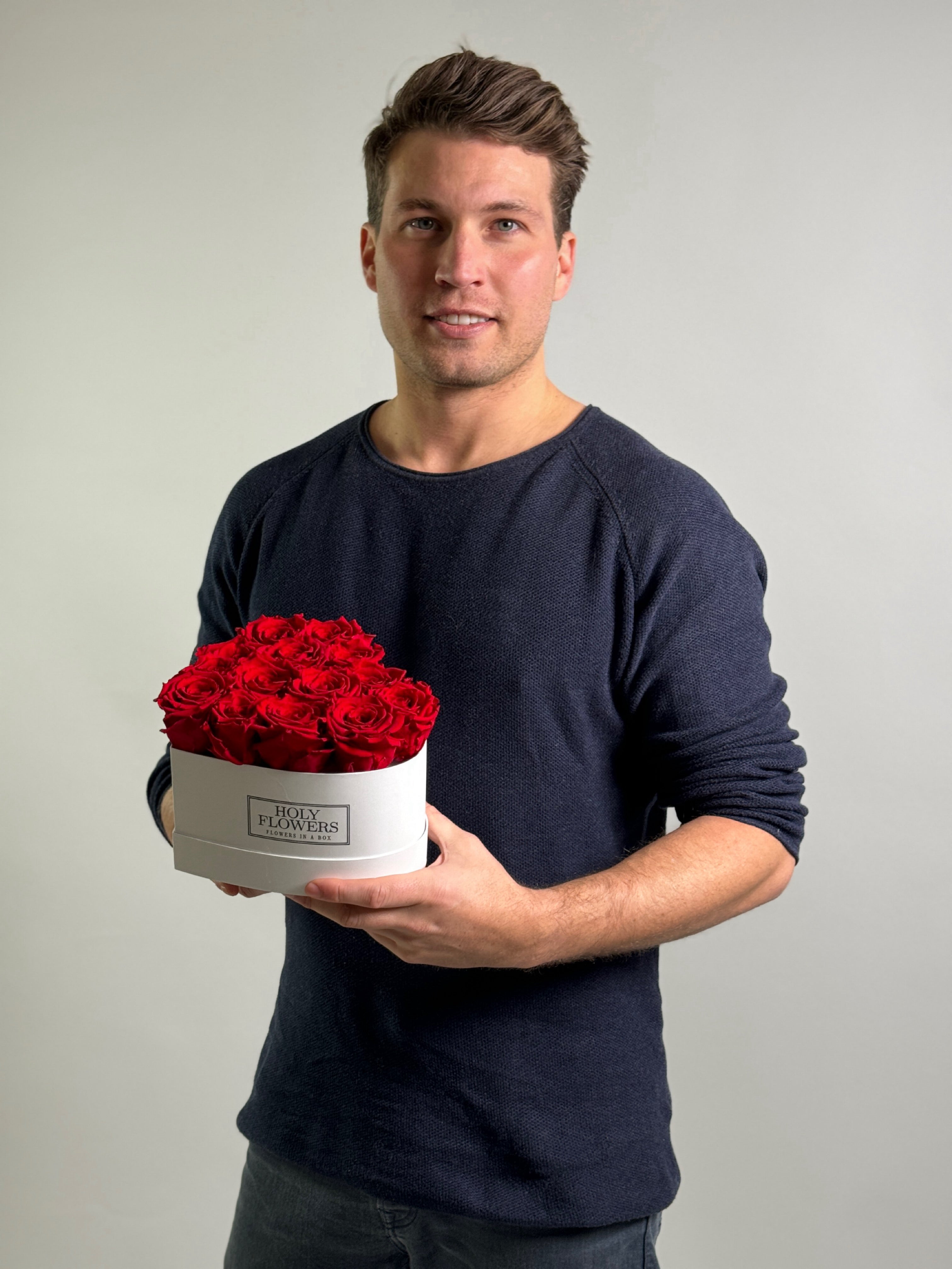 Our boxes are arranged into a flower box by florists in Berlin. The real roses have been carefully selected and preserved using a special process. This means we can guarantee a longevity of the Infinity roses of up to 3 years.