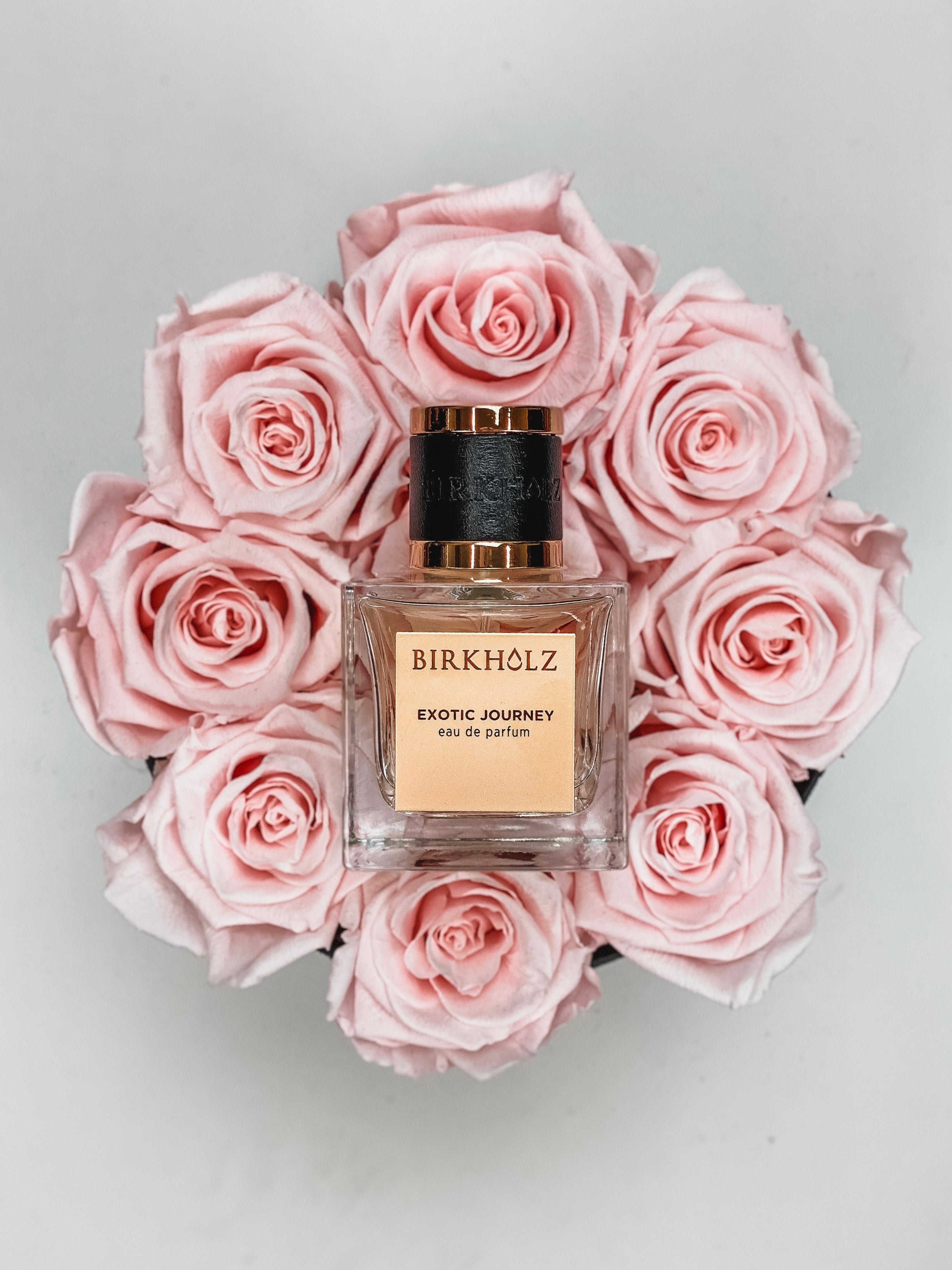 Bevor sich die Box auf den Weg zu euch macht, besprühen wir die Rosen mit dem Eeu de Parfum der Berliner Parfummanufaktur "BIRKHOLZ".